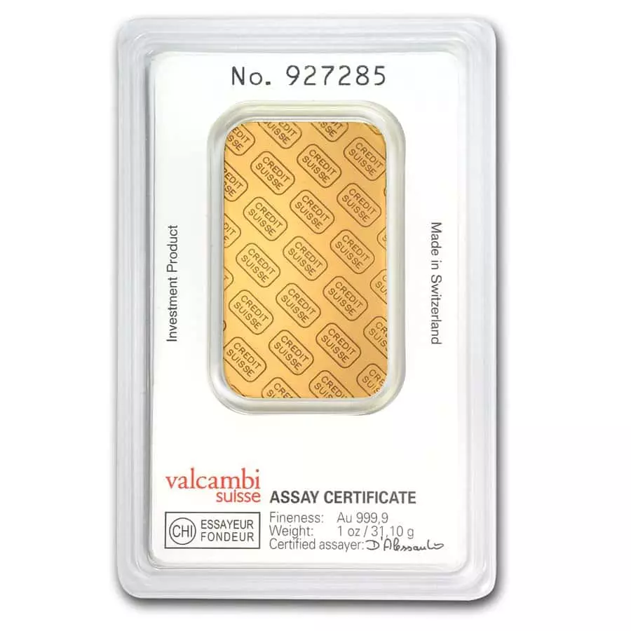 瑞士Credit Suisse金條1盎司為瑞士信貸集團發行,金條由瑞士最著名的貴金屬精煉廠之一 Valcambi 鑄造。