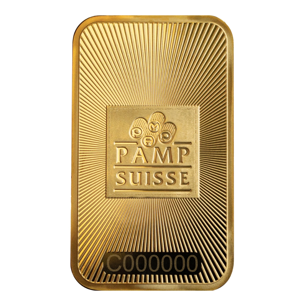 - 正面印記:PAMP品牌名稱、金屬純度和重量、序列號和PAMP的四個首字母標誌