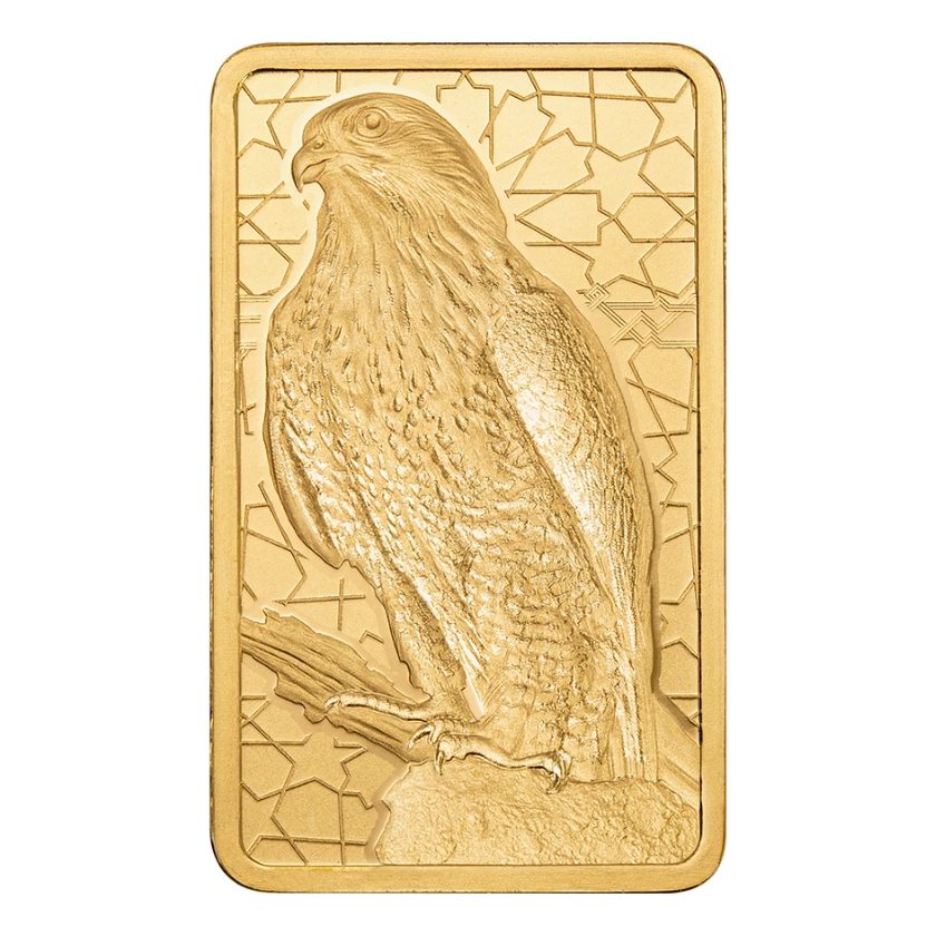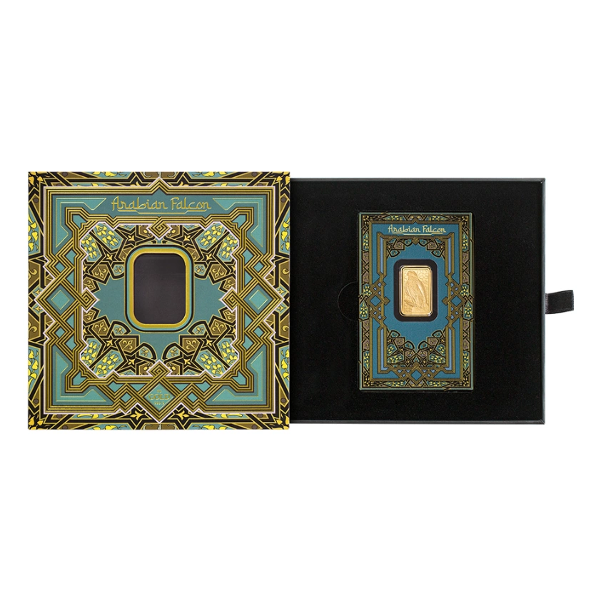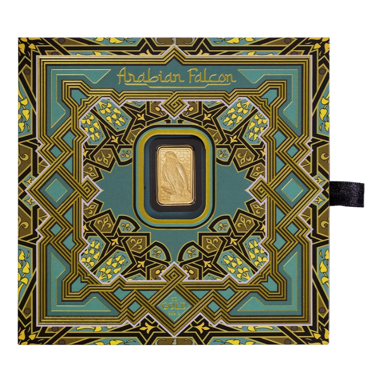 在阿拉伯半島的荒漠天際線上,獵鷹自古以來便被視為「沙漠貴族」的榮耀象徵,並在阿拉伯世界中代表著皇室和貴族的身份。數千年來,獵鷹一直是沙漠遊牧民族的重要狩獵夥伴,象徵著力量與尊貴。PAMP作為全球知名的貴金屬鑄造商,巧妙地將這一深具文化意義的象徵融入其精美的黃金藝術品中,推出了一款獨特的5克黃金條。這款黃金條作為「阿拉伯系列」中的第二件作品,延續了首作的市場熱度,並進一步深化了中東文化收藏的脈絡。此系列不僅是對阿拉伯文化的致敬,更是對其歷史和傳統的深刻理解與尊重。PAMP透過這些精緻的作品,展現出其卓越的工藝技術和對文化細節的敏銳洞察,為收藏家提供了具有高度藝術性和文化價值的收藏品。