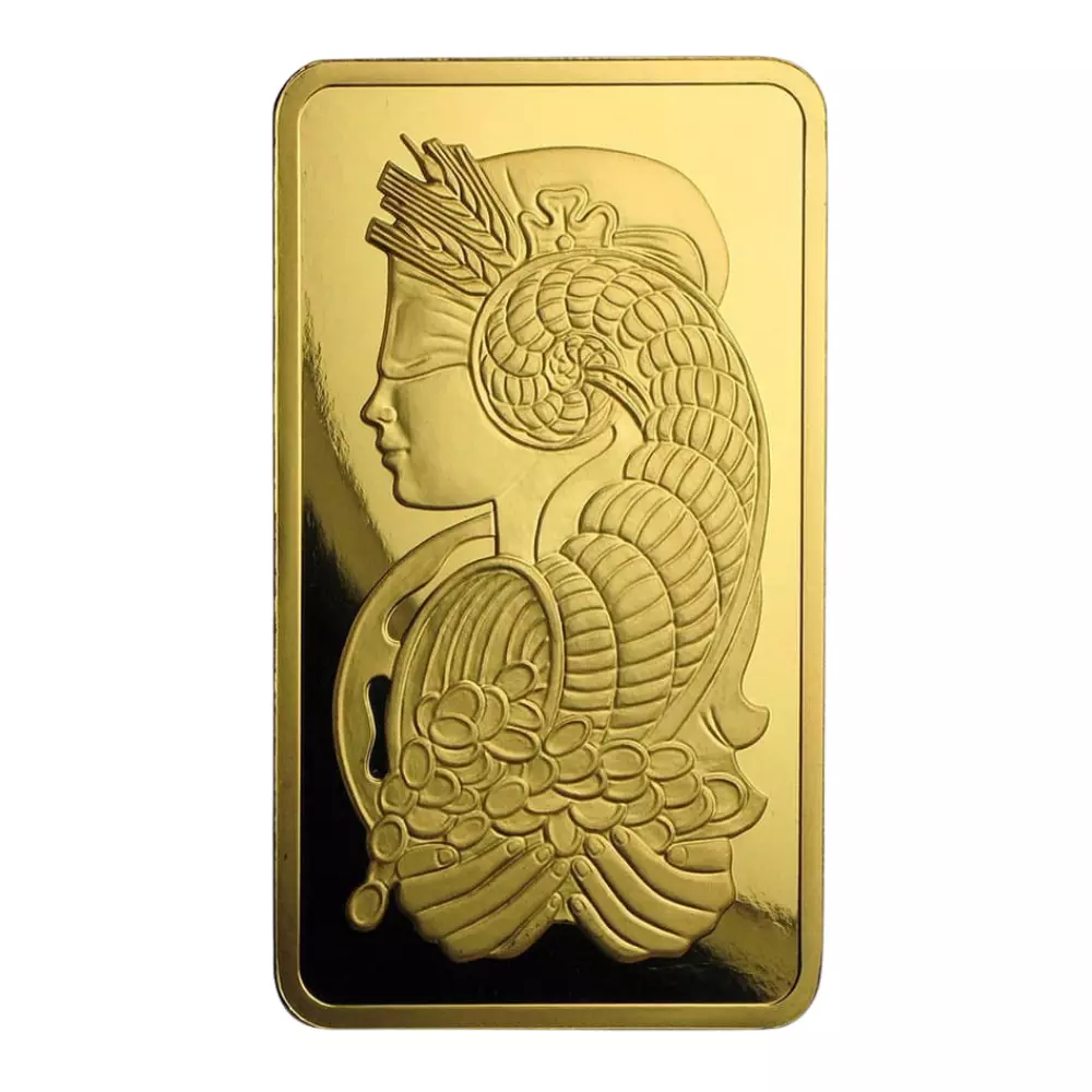 金條的正面精緻地雕刻了財富女神的優雅形象,而其背面則清晰地刻有PAMP的標誌、重量、純度和專屬序列號。每塊金條均附帶特製塑料盒和證書,以彰顯其獨特之珍貴。