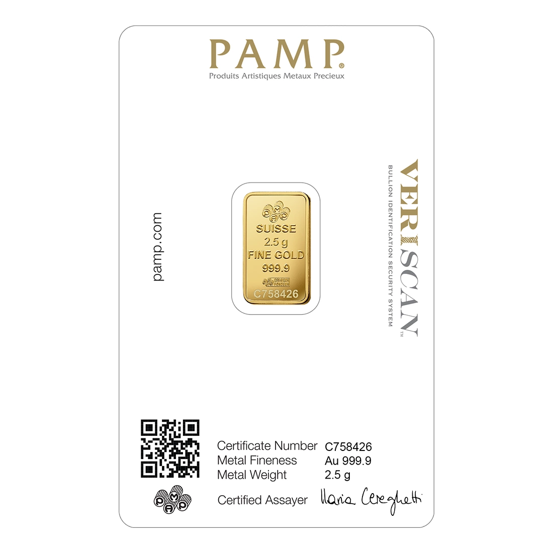 瑞士 PAMP Veriscan™ 財富女神金條 2.5 公克 – 檢驗卡裝