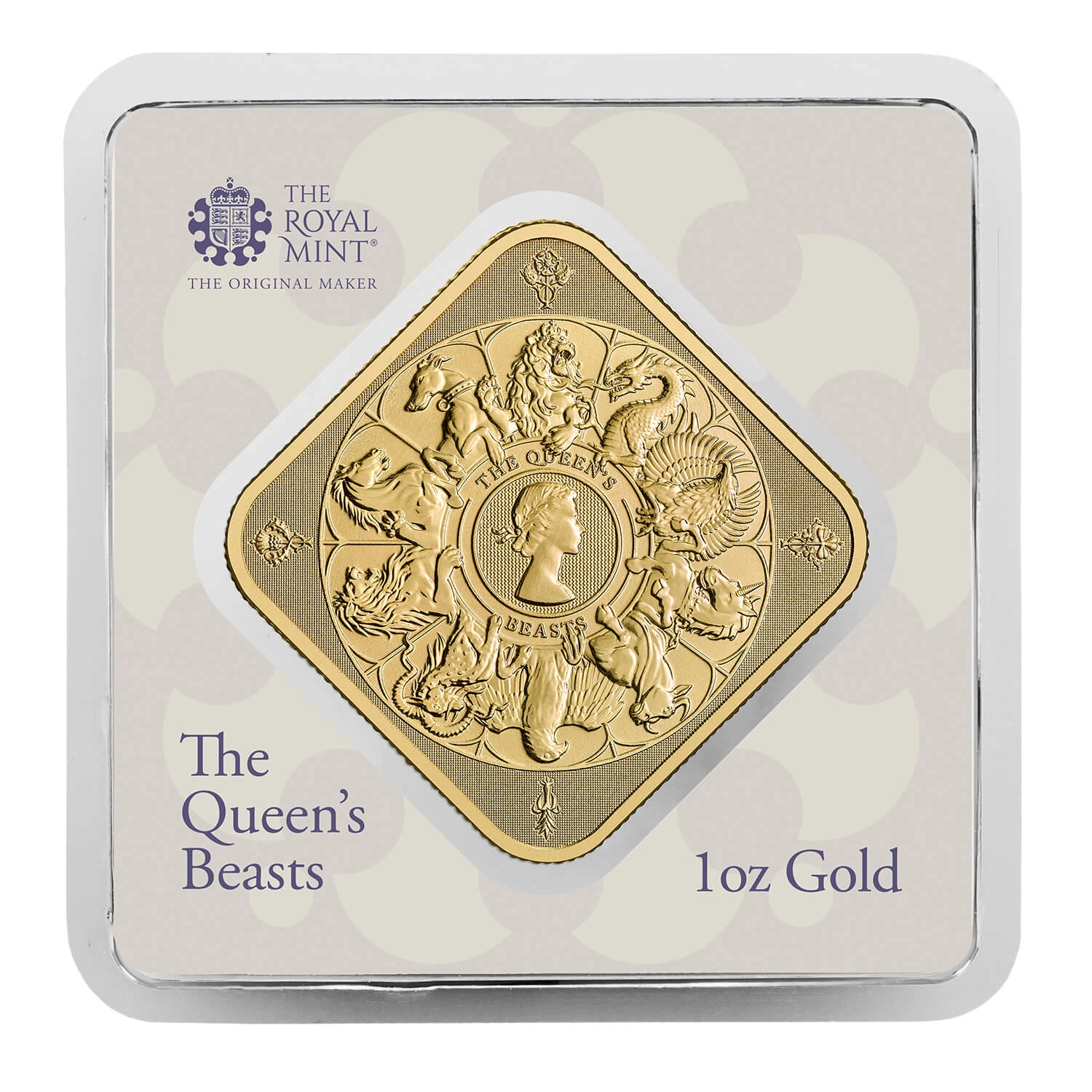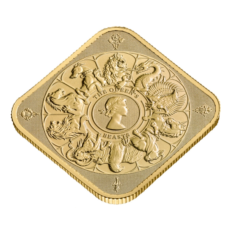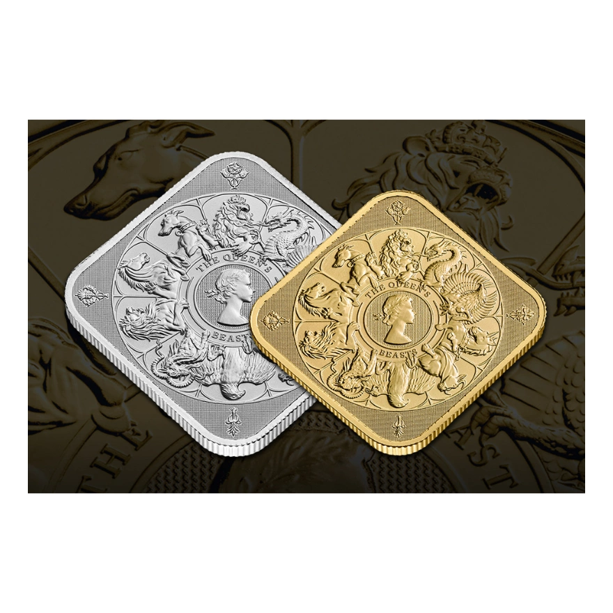 這款1盎司「英國女王全部的野獸」9999純金條由皇家鑄幣廠鑄造,致敬伊麗莎白二世女王在位期間的歷史傳承。其設計靈感源自1953年加冕典禮時矗立於西敏寺外的十座紋章神獸雕像,包含象徵英格蘭的獅鷲、威爾斯的紅龍等,每隻神獸皆代表王室千年血脈的守護者。此作不僅是系列收官之作,更首度以方形鑄造工藝彙整全系列神獸圖騰,中央鑲嵌瑪麗·吉莉克設計的女王青年肖像,將傳統紋章學與現代貴金屬工藝完美融合。
