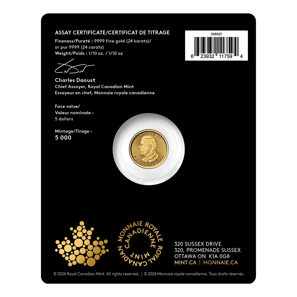 2025加拿大北極熊鑄印楓葉金幣1/10盎司 – 檢驗卡裝 – 楓葉國寶,北極驕傲