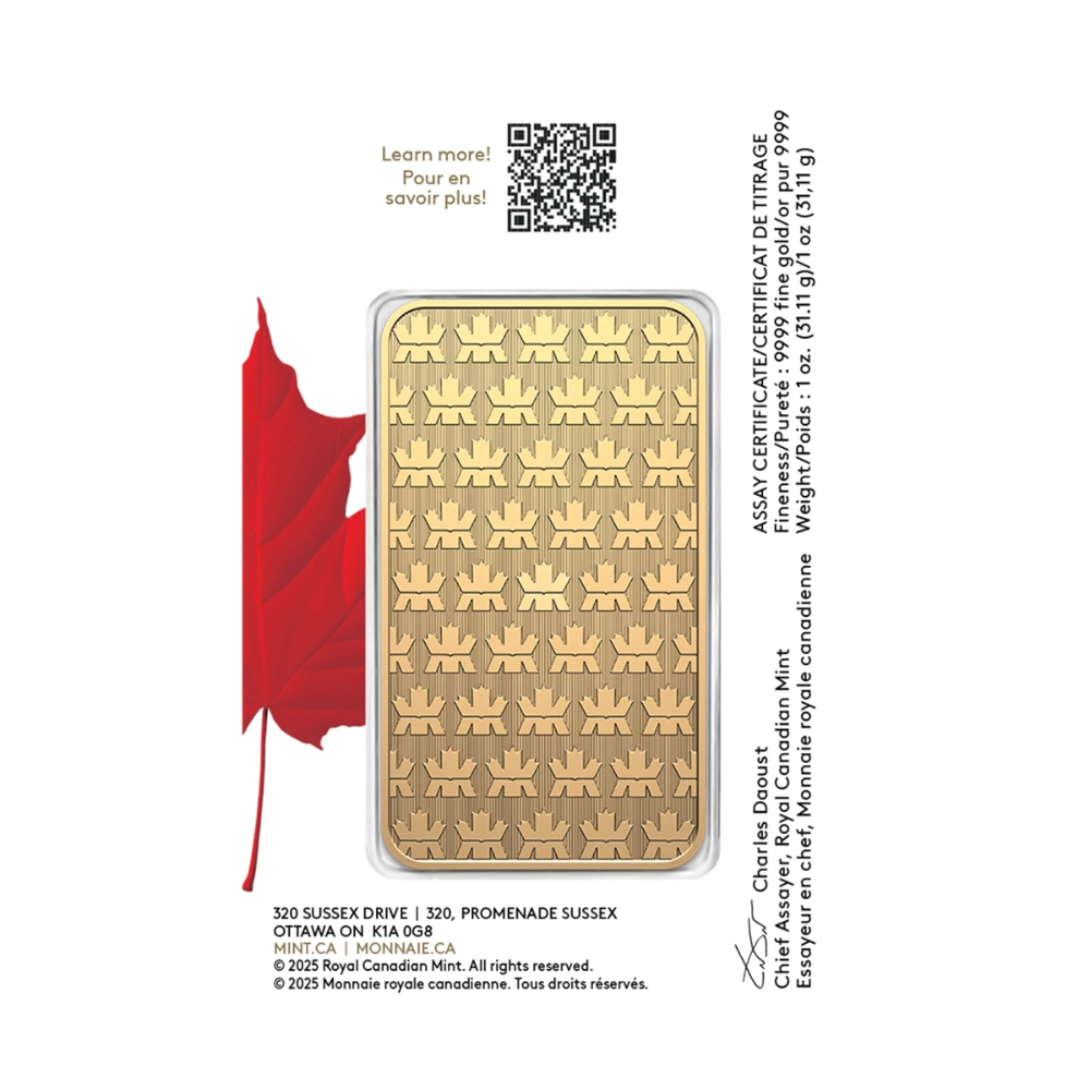 2025 加拿大皇家榮耀金條 1 盎司 – 檢驗卡裝
