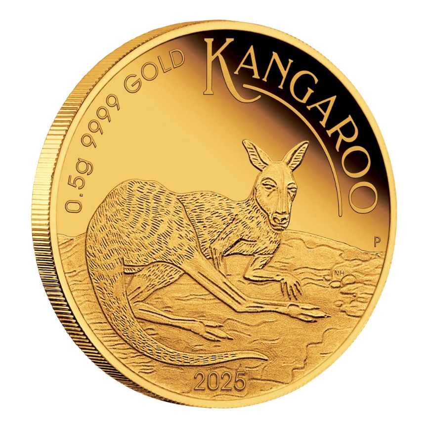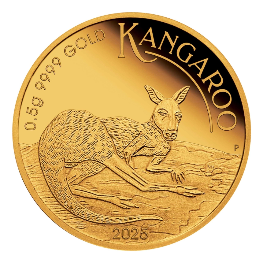 澳洲迷你袋鼠(Mini Roo)金幣系列是伯斯鑄幣廠的經典之作,自推出以來深受全球收藏家喜愛。這款微型藝術品延續了澳洲袋鼠金幣的傳統,以其精巧的尺寸和精湛的工藝贏得了市場的讚譽。袋鼠作為澳洲的國家象徵,代表著這片古老大陸的獨特野生動物遺產和文化精神。2025年版的迷你袋鼠金幣,以其精緻的設計和極高的純度,完美地捕捉了袋鼠在澳洲曠野中自由奔跑的優雅姿態。
