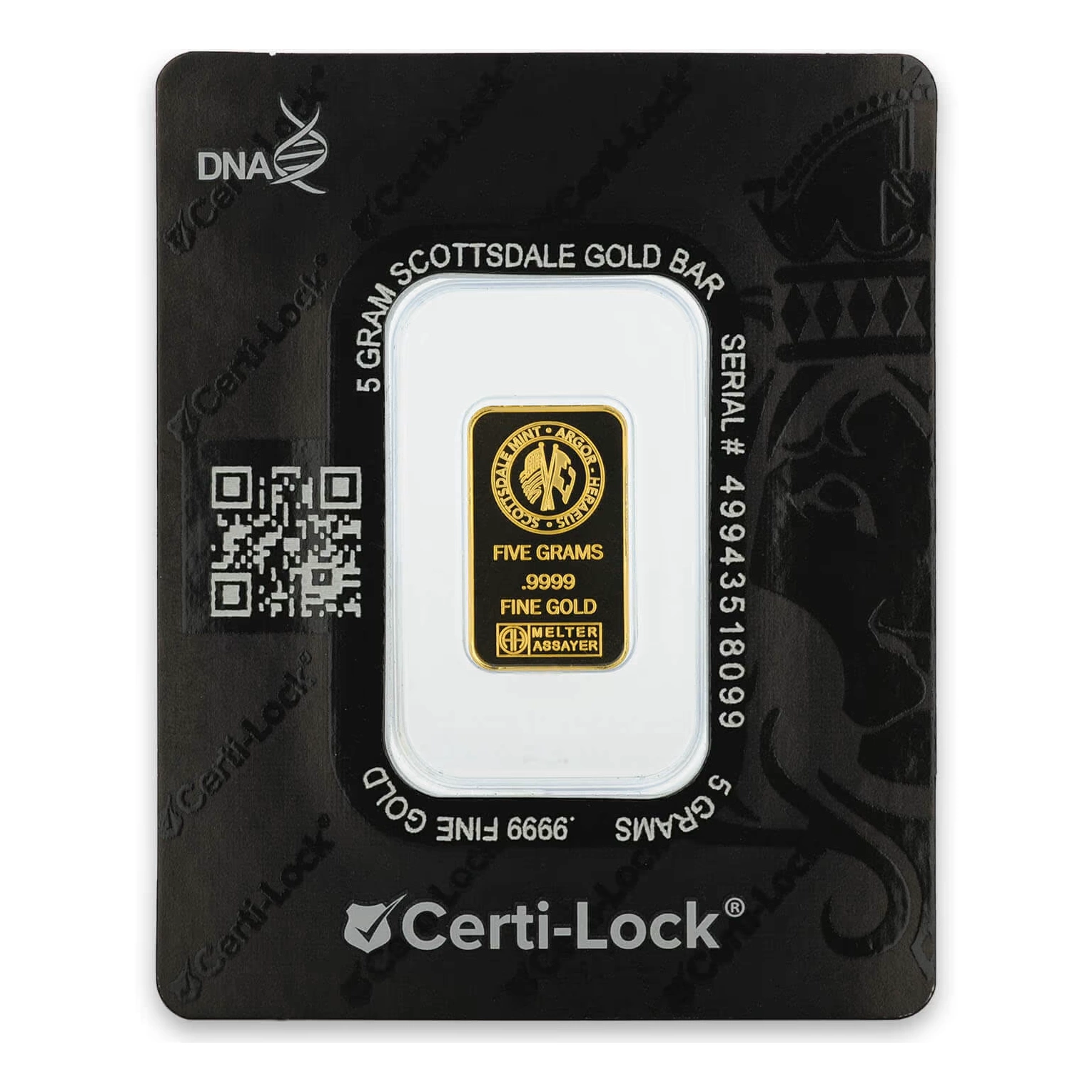 Scottsdale 獅王金條5公克 – Certi-Lock® 卡裝 – 全球認可、信譽卓著