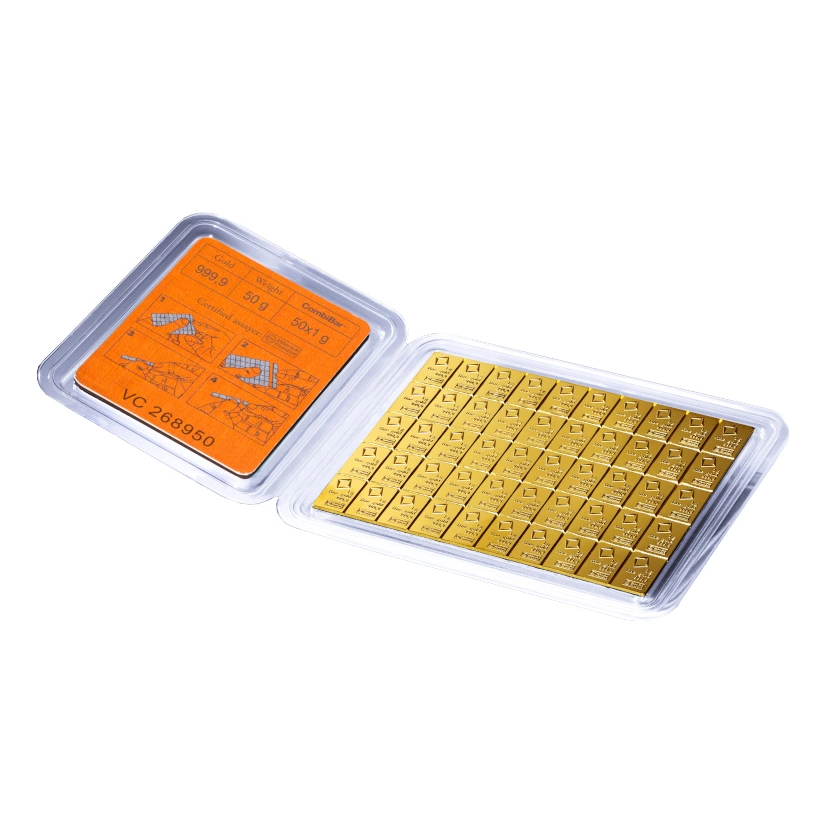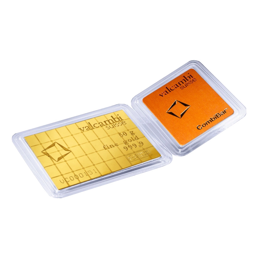 • 🛡️精密封裝:每 50 克 Valcambi gold CombiBar™ 都安全密封於PETG材質保護卡裝中,內附唯一流水編號檢驗卡,卡面載明金屬成分及重量